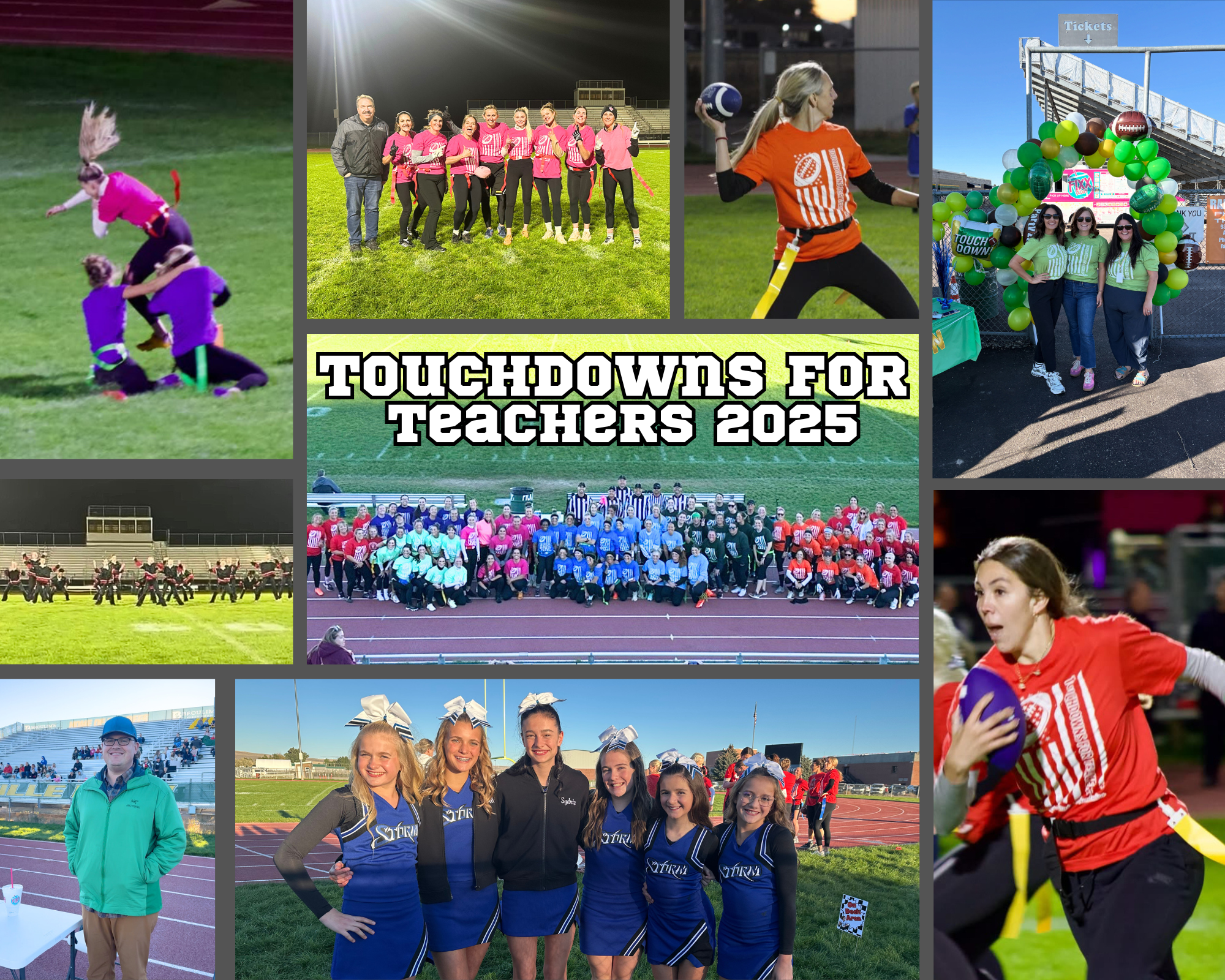 Every detail of this event was made possible by the generosity, teamwork, and heart of our community. From the laughter in the bleachers to the pink-tinted glow of the field lights, Touchdowns for Teachers reminded us that when our schools and community come together, we can accomplish something truly special.